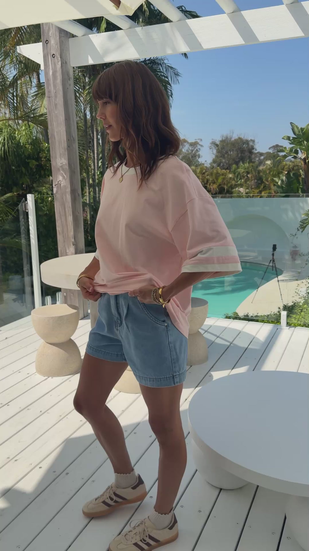 Blake Relaxed-Fit Stripe Tee - Pink and White