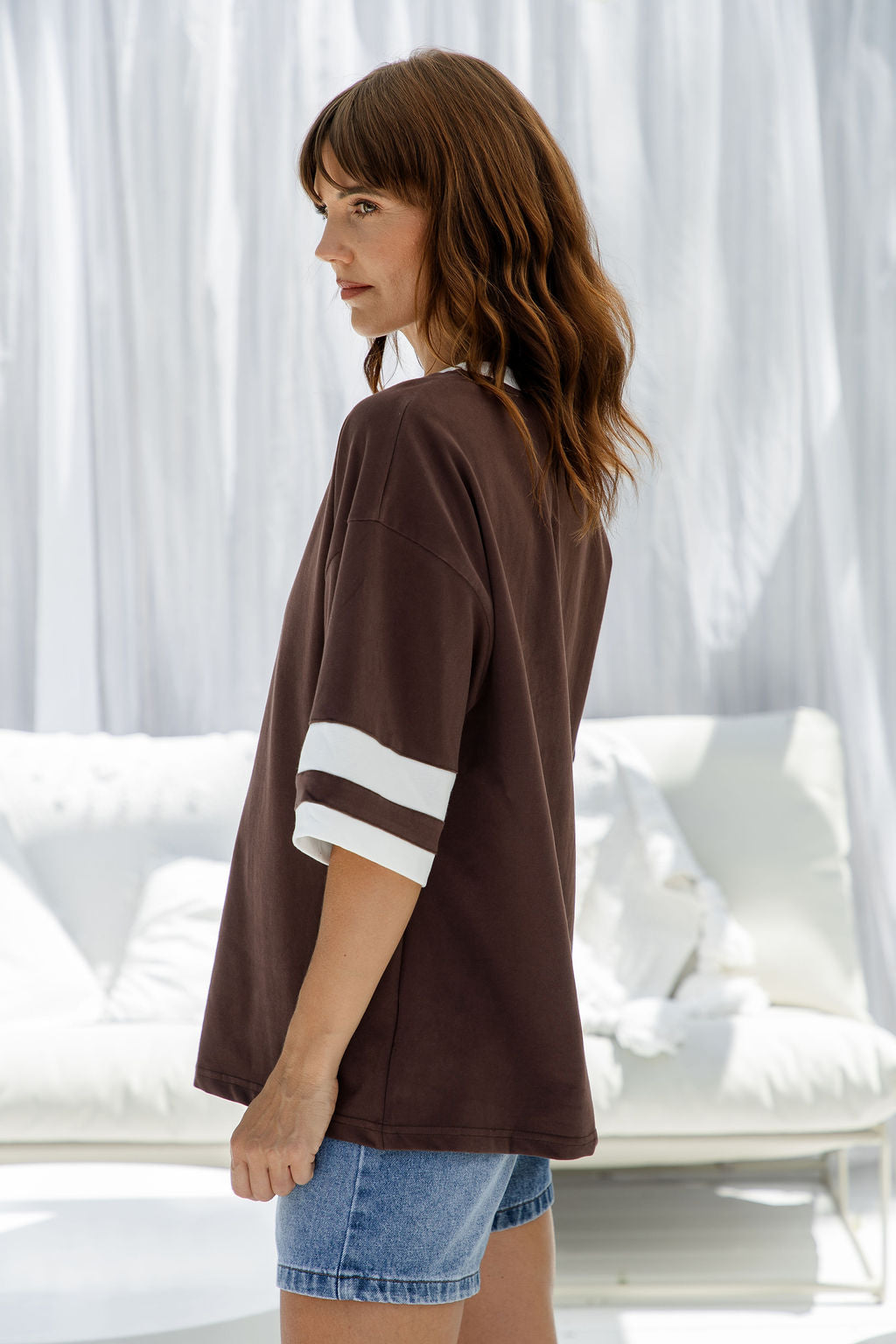 Blake Relaxed-Fit Stripe Tee - Chocolate and White
