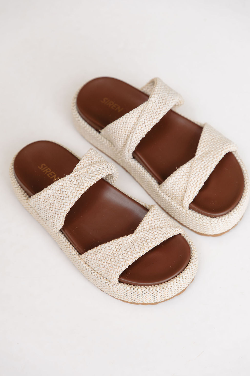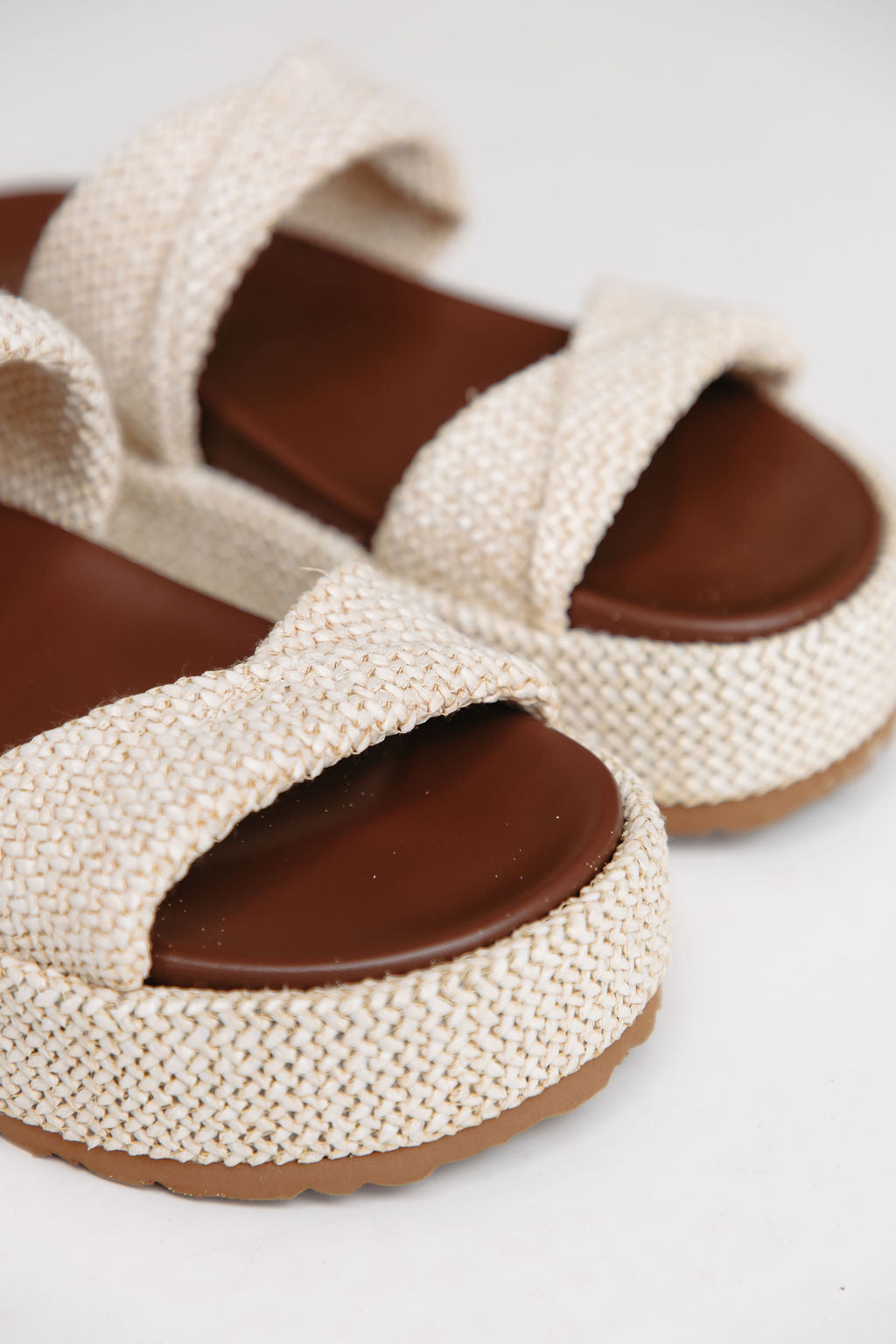 • Chunky slides with textured woven straps