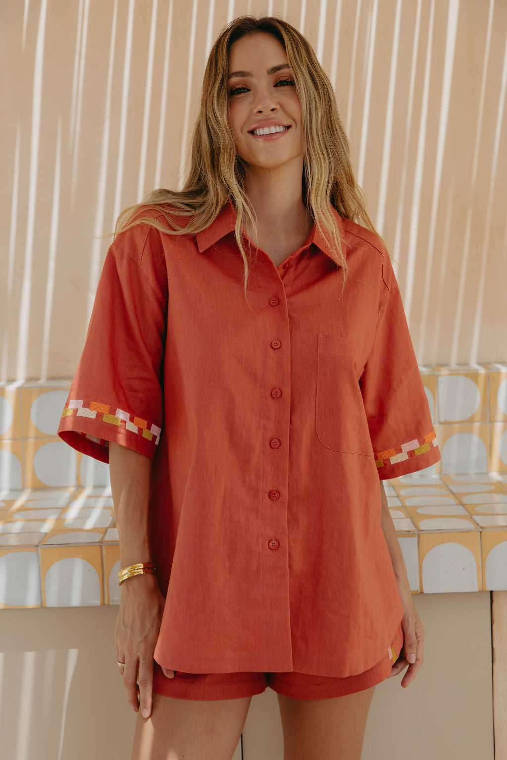 Pia Linen Shirt - Papaya